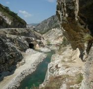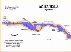 - Makta Vrelo, vaste source sous-fluviale située dans le magnifique canyon de la rivière Treska, au sud de la capitale, Skopje. Nous avions exploré cette source en 2000 jusqu’à 425m de l’entrée par 67m de profondeur avec arrêt au sommet d’un vaste puits avec vue à - 90m. L’eau qui résurge à Makta Vrelo provient de pertes de la rivière Patiska situées à 12 km de la source et 500 m plus haut sur le massif! Le réseau à découvrir s’annonce donc gigantesque ! Ces pertes, qui nous étaient restées inaccessibles lors de notre première visite, constituaient un objectif supplémentaire de l’expé 2007. Cette source s'est révélée être, suite à nos travaux de 2000, une ressource potentielle en eau potabilisable de première importance pour la ville de Skopje.
