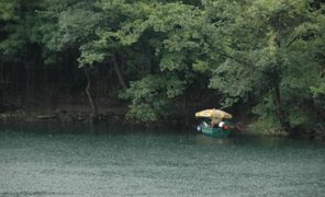 Samedi 04/08 : c'est le grand jour! Nous sommes sur le pied de guerre dès 07h. Nous préparons les derniers sacs, faisons notre briefing devant un petit café belge, déjeunons et portons tout le matériel sur le quai. Nicola, notre pilote, est là à 9h tapante comme prévu. Nous chargeons et levons l’ancre peu avant 10h. Trente minutes de navigation et nous sommes au débarcadère de fortune proche de l source. Nous déchargeons le bateau.