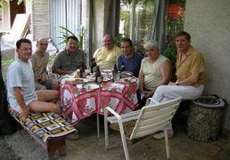 Accueil et première réunion chez Yvan (de gauche à droite: Kiro, Hritjian, Jean-Pierre, Roger, Marc, Borce et Yvan)