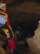 "" ……… Après que nous ayons retrouvé les participants à l'expédition sur le parking des visiteurs de la grotte, Maxime fait un court briefing et répartit le matériel à transporter entre les sherpas . Puis commence la courte marche d'approche vers l'entrée où nous allons nous changer et mettre nos vêtements spéléo. Là une suprise de taille m'attend, alors que j'ai prêté une grande attention à la préparation de mon matériel de plongée je m'aperçois que j'ai totalement oublié d'empaqueter mes nouvelles bottes! Les anciennes je les avais laissé dans le bourbier de la grotte de Môtiers quinze jours auparavant , ce qui m'avait obligé de faire le retour en chaussons avec comme pièce de bravoure la désescalade pieds nus de la coulée de calcite et à passer une commande urgente de nouvelles bottes en vue de l'exploration de la semaine suivante . Celles-ci étaient bien arrivées dans les délais mais , j'avais négligé de les ranger dans notre local à matériel d'où mon oubli lors de la préparation des kits. Par chance je trouve au fond de la voiture une paire de chaussures de randonnée et ne suis ainsi pas obligée de renvoyer à ses pénates tout ce petit monde qui attend anxieux d'avoir fait plus de 100km pour rien !