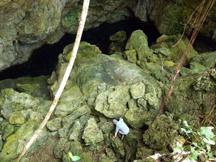 qu'on y trouve des coquilles de nautiles. Descrition Grotte volumineuse de 192.38 m de longeur qui donne accès à 2 lacs souterrains avec de l'eau cristalline (Visibilité 40m) Le siphon sud-ouest est exploré en apnée par O.Knab : Développement : 12m, profondeur : 3m ( 21.2.1988 ) Arrêt sur impasse. Le siphon nord-est : tunnel de 8 x 4m , Concrétions spéctaculaires sous l'eau.Ph.Brunet plonge ce Siphon le 23.8.1995 sur 50m de distance et 16m de profondeur.Le siphon se termine là. Bibliographie Höhlenpost Nr.78 , 1988, p.37 –47, O.Knab , Speleonautic 88